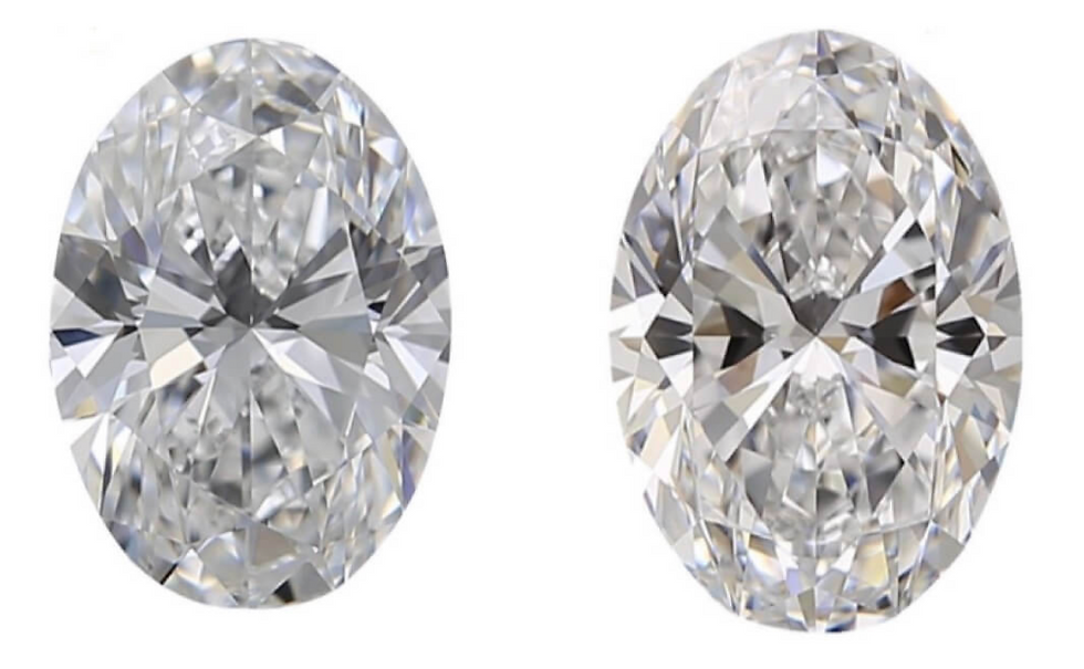 It is important to note that most Oval cut diamonds possess a ‘bow tie’ effect in the middle of the diamond, and this can vary from invisible to severe. The visibility of the bow tie effect cannot be determined from a diamond certificate or by analysing the diamonds’ dimensions, and can only be detected from visual inspection.